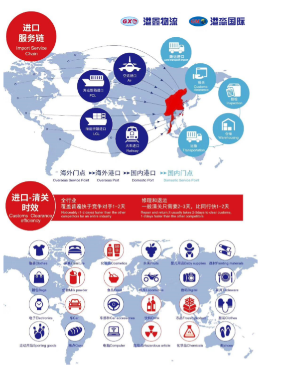 购以及合理化建议,以最快、最低的运价,给予缅甸的基础工程、海外工厂,通过海运、陆运、空运等方式,直接发货送至客户手中,真正做到门到门供应链。